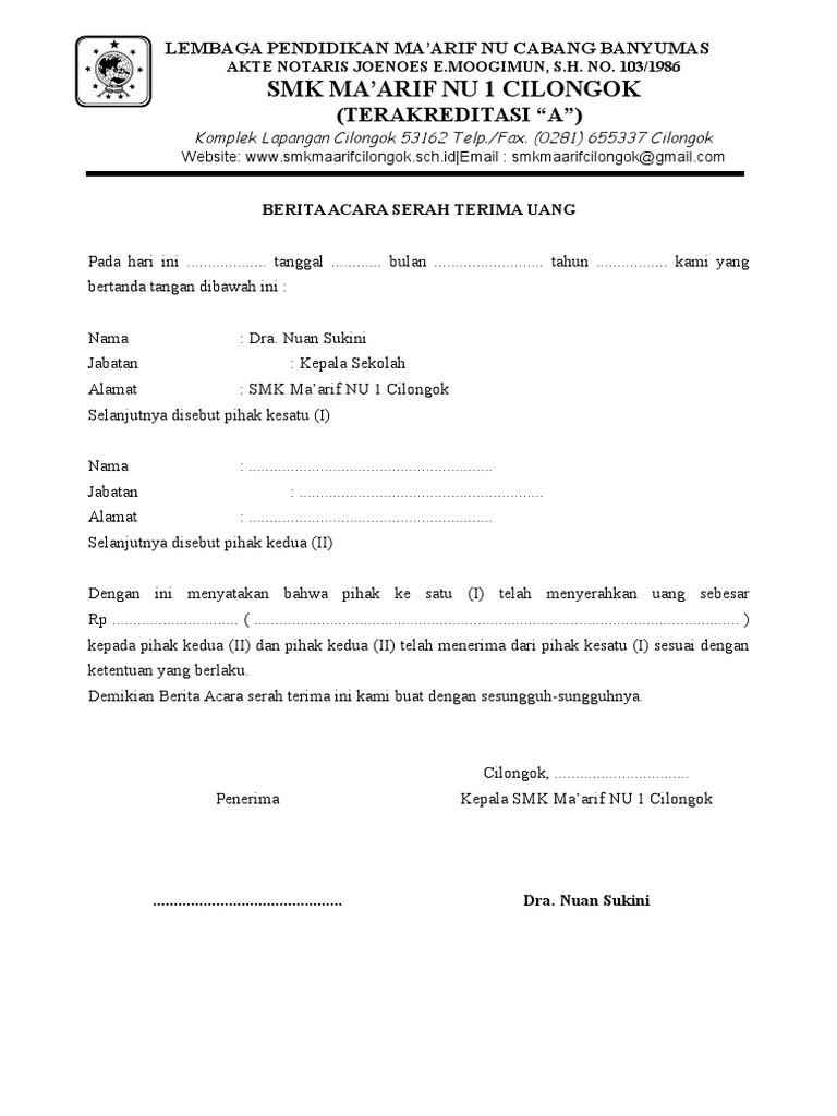 Untuk mengunduh draf surat diatas format ms word doc. Berita acara serah terima dokumen ujian nasional. Contoh surat akuan terima wang contoh surat.